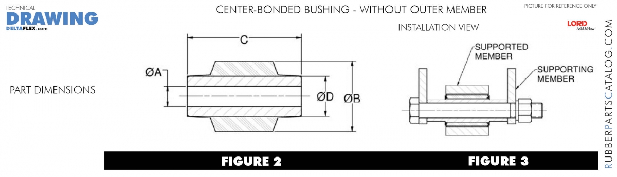 Center-bonded bushings are designed to be loaded radially and utilize a soft torsional spring rate to provide freedom in rotation. High radial restraint maintains the alignment between joined parts.