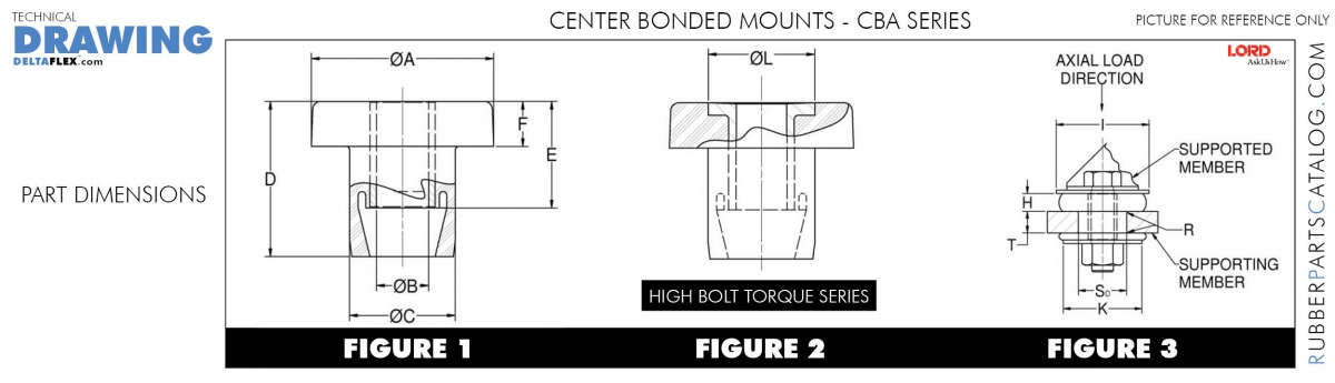 CBA mounts isolate vibration , control shock and reduce noise due to structure-borne vibrations. Twenty years of successful applications have gained industry-wide acceptance for center bonded mounts. Building on this experience , Lord introduced the new CBA series which incorporates higher load carrying capacity with improved multi-directional resilience and built-in rebound protection.