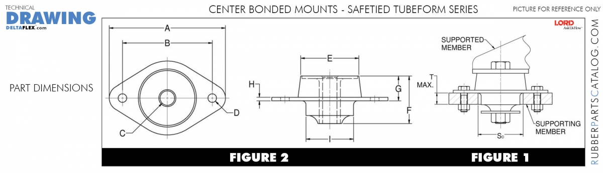 Lord Center-Bonded Safetied Tubeform Series is designed to give similar characteristics as the Center-Bonded STA Series by simply placing the mount in a clearance hole that can be punched, burned, cast or drilled into the supporting member. The main advantage of this series is ease of installation. The bolt which assembles the supported member to the mount can be tightened to normal torque. Proper pre-compression of the flexing element takes place when the bolt is tightened against the mount's inner member.