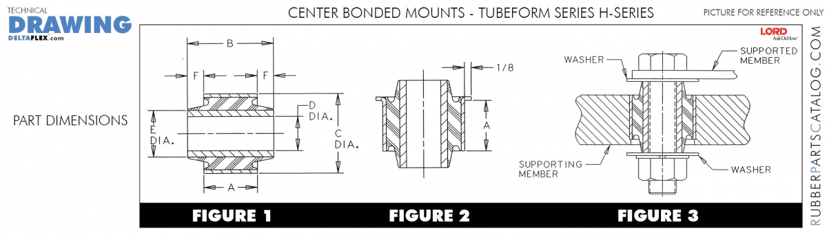 LORD H-Series TUBEFORM Center Bonded Rubber Mounts